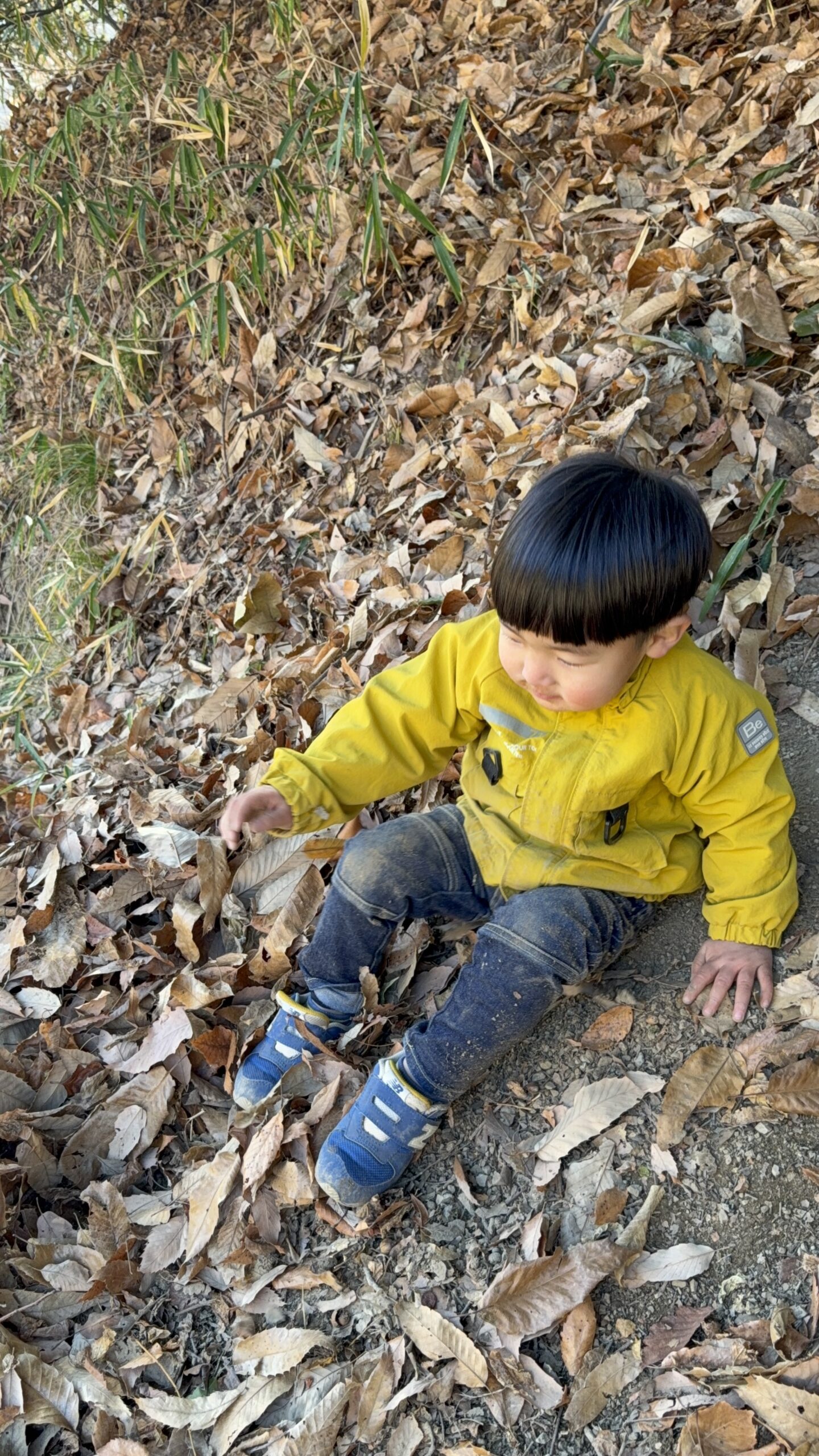 下の子は終始山の斜面を、本当は他のお兄ちゃんを追いかけて上に登りたいけど登れないの葛藤から編み出した天然滑り台で遊んでいました。